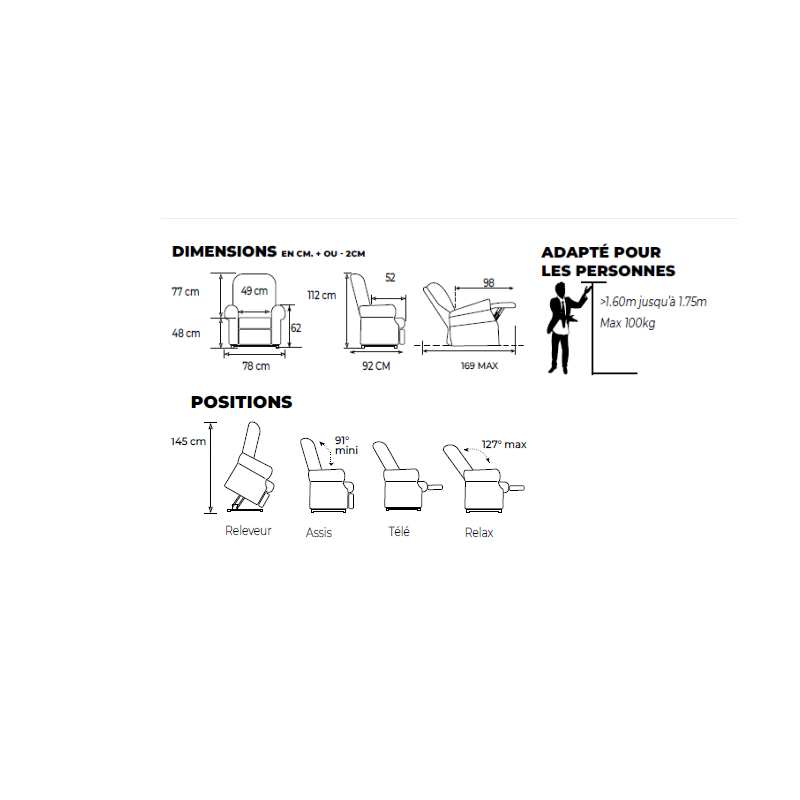 Largeur : 78 cm Hauteur : 112 cm Profondeur : 92 cm