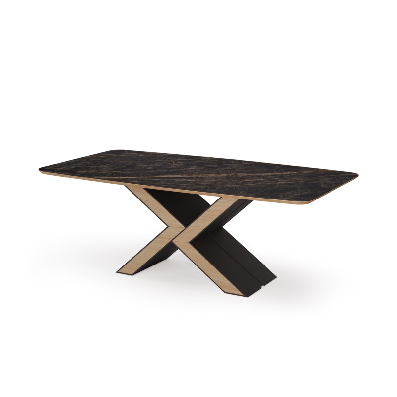 La table à manger Éclair allie élégance et innovation. Le piètement en bois en forme de « x » se distingue par de nouvelles finitions, offrant un contraste visuel captivant. Le plateau, disponible en bois ou en céramique, ajoute une touche sophistiquée. Choisissez ce design pour rehausser l’esthétique de votre salle à manger.