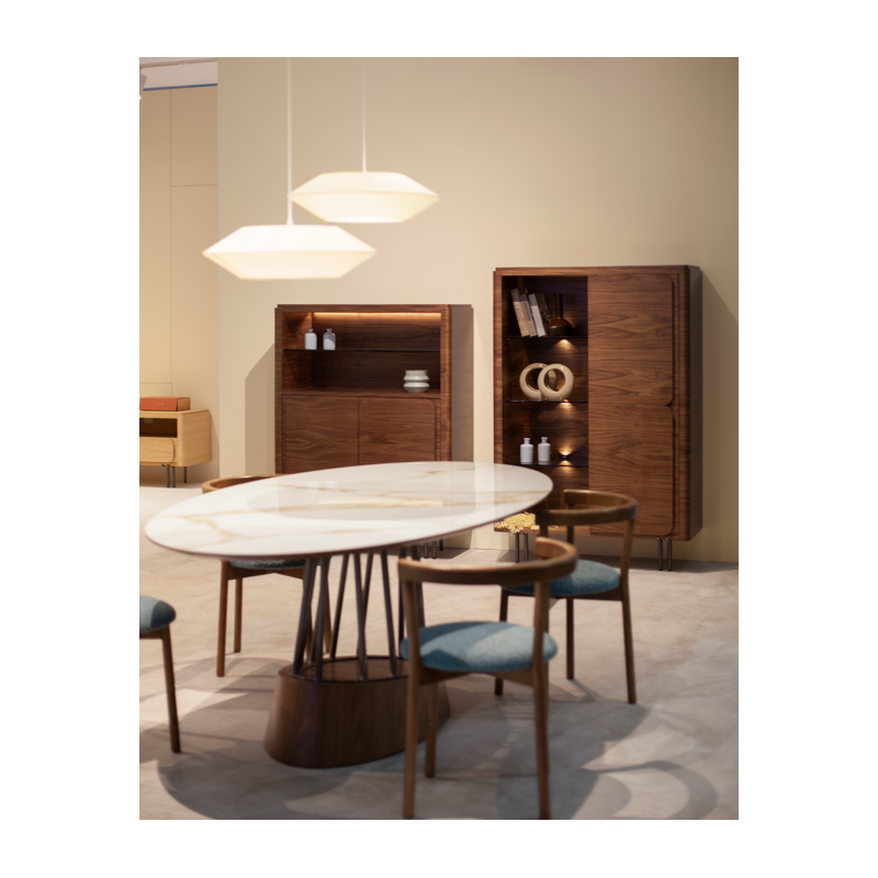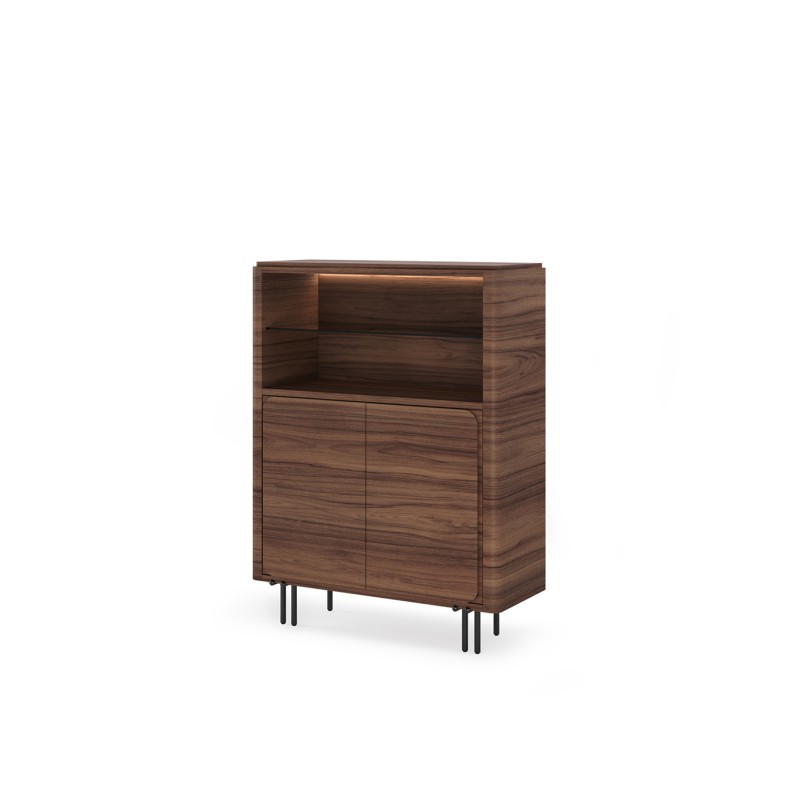 Exposez vos objets de décoration avec la Vitrine Fiore. Son design fin et élégant fait d’elle le choix idéal pour un salon ou un couloir. Deux portes tic tac, disponibles avec une façade en bois ou en céramique, et une étagère en verre bronze offrent un design délicat et fonctionnel. Système LED touch. Elle est dotée de pieds en fer.