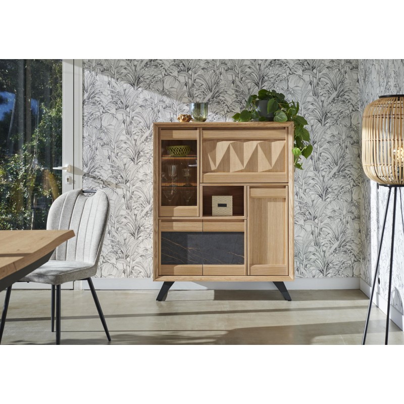 Voici notre armoirette Delta en bois de chêne et céramique. Véritable meuble de rangement, équipé de 4 portes.