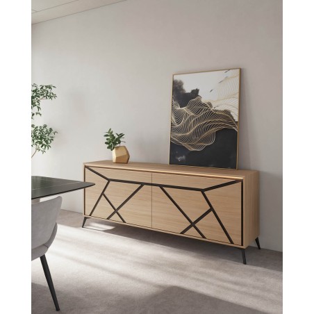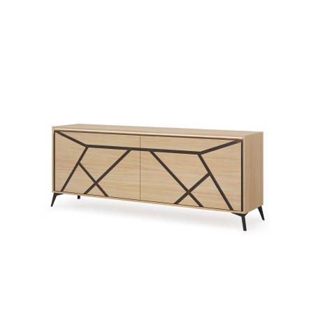 Buffet 2 portes chêne et insert décoratif Fer Zagas Mikadu