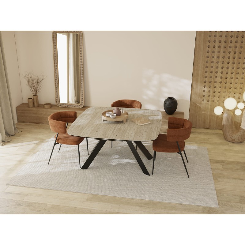 Son piétement structuré est conçu en acier laqué noir mat pour une touche de raffinement.