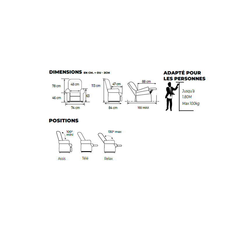 Fauteuil relax pivotant 2 moteurs avec têtière réglable en inclinaison