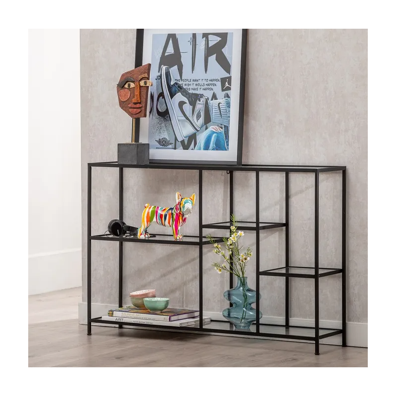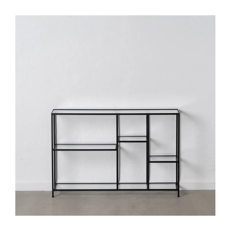 Apportez une touche moderne et élégante à votre intérieur avec cette étagère en métal noir et tablettes en verre trempé.