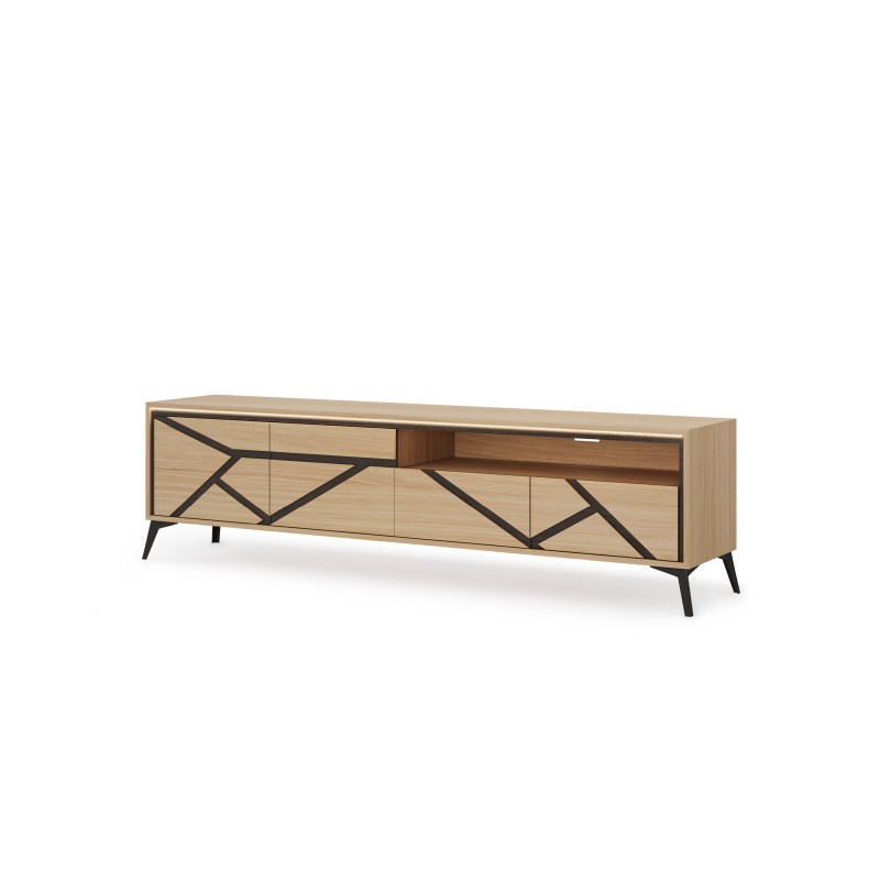 Meuble TV 2 portes 1 tiroir 1 niche chêne Zagas Mikadu