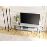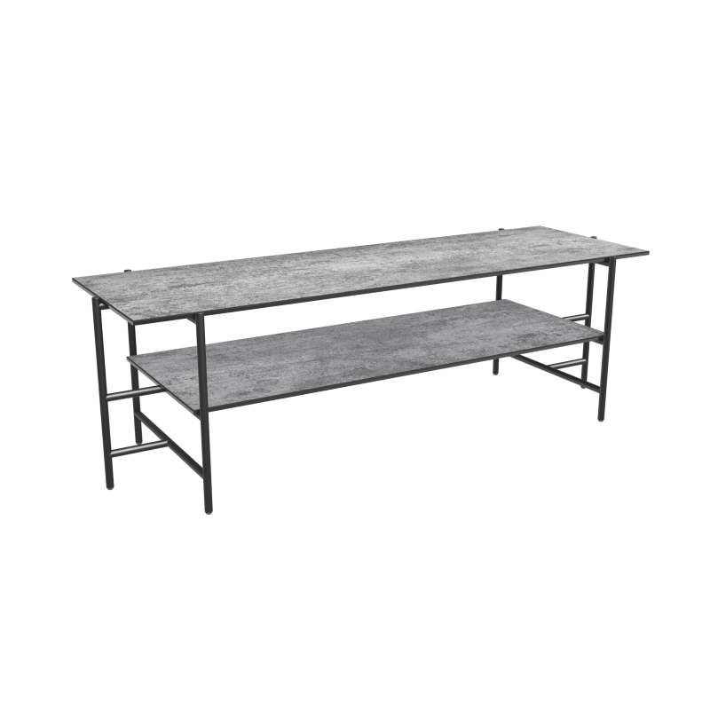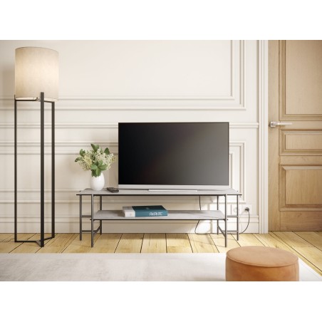 Voici l’original meuble TV Versailles signé Akante. Pour apporter de l’authenticité à votre salon, son plateau en céramique silver, chic et intemporel, de 3 mm d’épaisseur collé sur un verre de 6 mm, rend ce meuble unique. Les lignes métalliques de son piètement en acier laqué noir mat apportent un esprit contemporain à ce meuble tv dont les deux plateaux sont la signature.