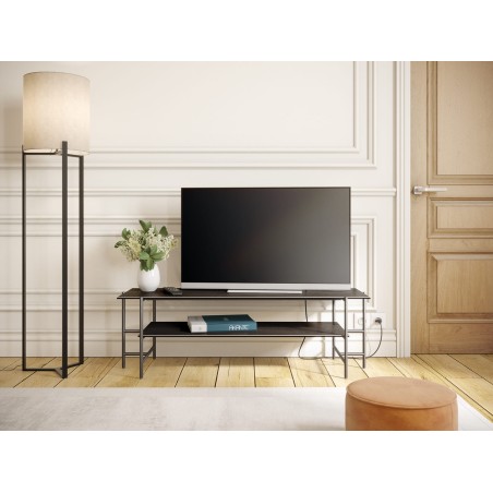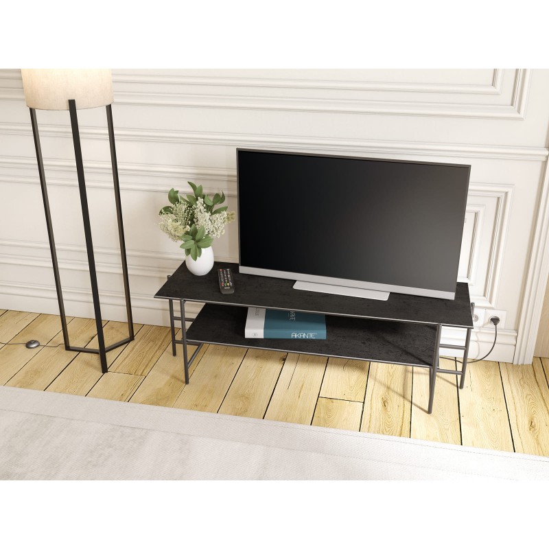 Voici l’original meuble TV Versailles signé Akante. Pour apporter de l’authenticité à votre salon, son plateau en céramique silver, chic et intemporel, de 3 mm d’épaisseur collé sur un verre de 6 mm, rend ce meuble unique. Les lignes métalliques de son piètement en acier laqué noir mat apportent un esprit contemporain à ce meuble tv dont les deux plateaux sont la signature.