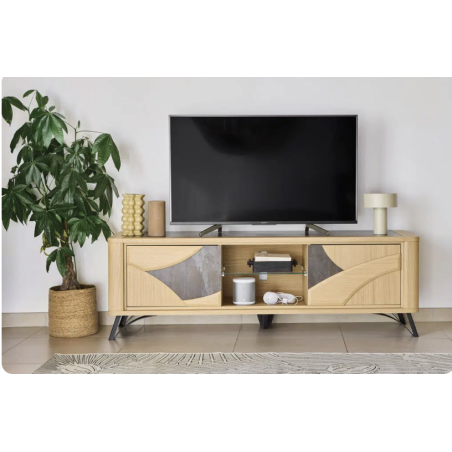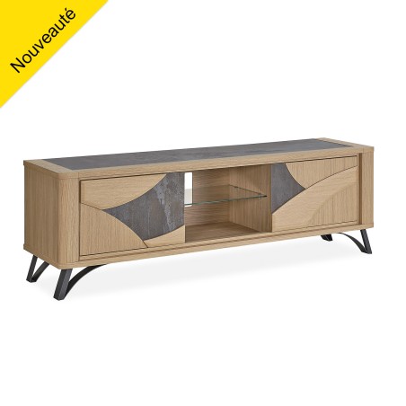 Meuble TV Riviera Girardeau 2 portes chêne et céramique