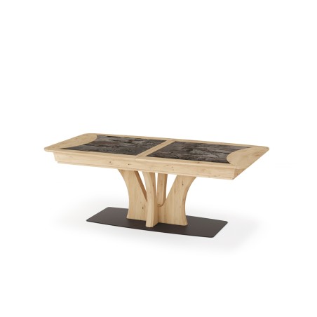 Table 3 allonges pied central Zagas Provence chêne et céramique