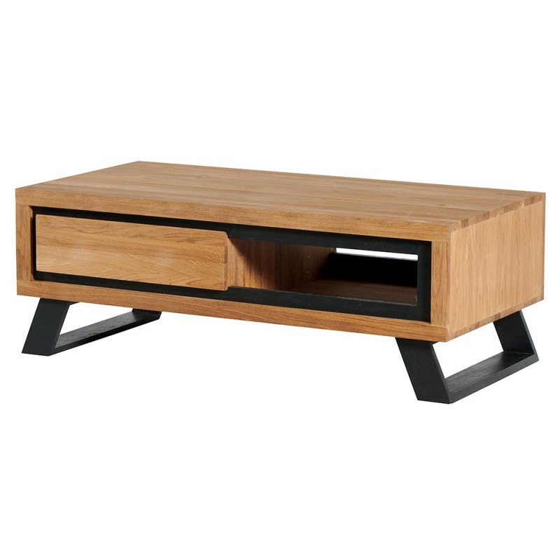 Table basse 1 tiroir 1 niche chêne massif huilé