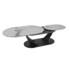 Grâce à ses deux plateaux ovales pivotants à 360°, les surfaces se superposent pour un gain de place. KOS mesure 95 x 60 cm lorsqu’elle est refermée, et atteint 160 x 60 cm une fois déployée.
