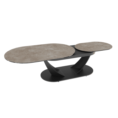 Grâce à ses deux plateaux ovales pivotants à 360°, les surfaces se superposent pour un gain de place. KOS mesure 95 x 60 cm lorsqu’elle est refermée, et atteint 160 x 60 cm une fois déployée.