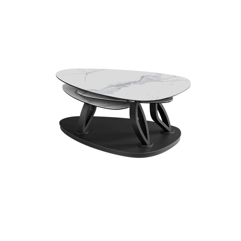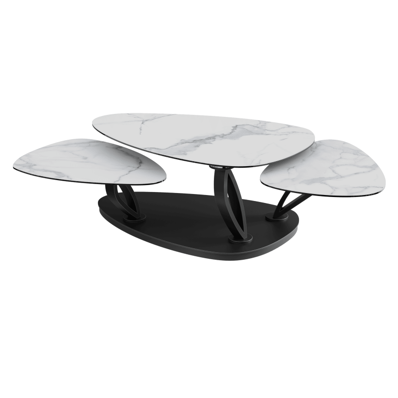 • Fonction : les plateaux tournent et se déploient, ce qui permet de modifier la forme et les dimensions de la table selon vos besoins