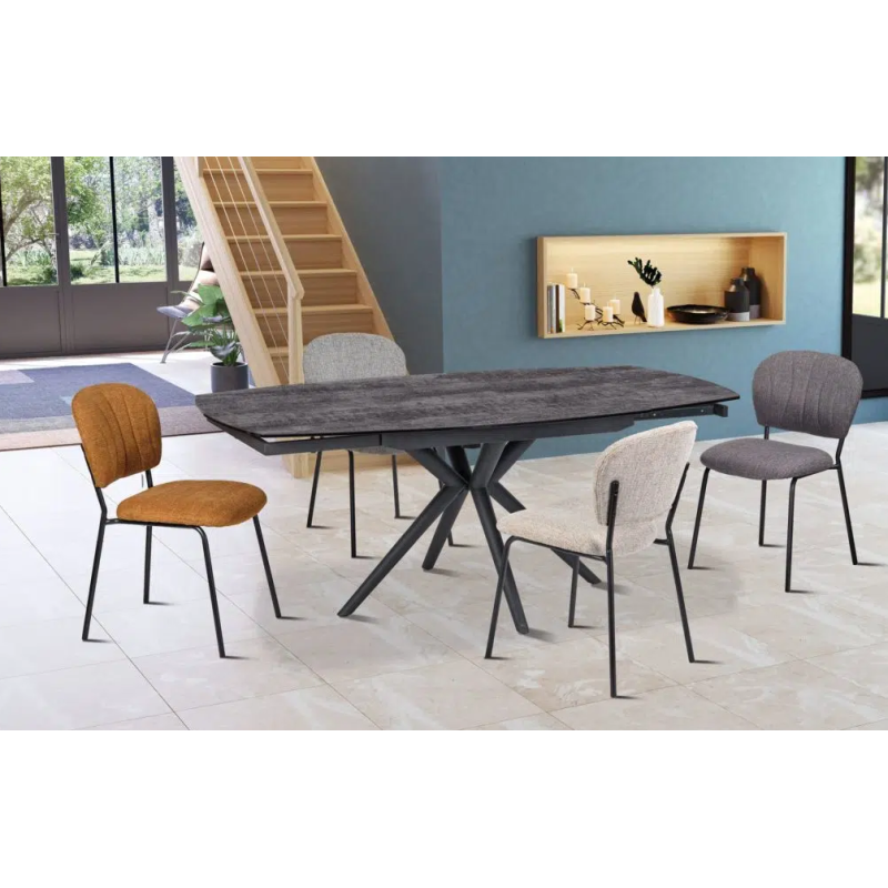 La finition en céramique haut de gamme n'est pas seulement esthétique mais aussi pratique, offrant une résistance exceptionnelle aux rayures, à la chaleur et aux taches, assurant ainsi que votre table reste impeccable au fil des années. La forme ovale crée une atmosphère accueillante et conviviale, tandis que le piétement robuste assure une stabilité inégalée.