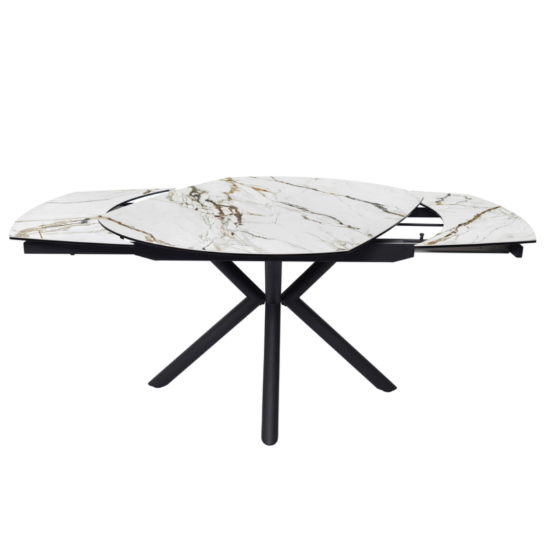 Dotée d’un plateau rotatif de 130 cm, elle s’adapte facilement à vos besoins du quotidien comme à vos moments de convivialité. Grâce à ses deux allonges escamotables de 30 cm situées en bout de table, elle se déploie en toute simplicité pour atteindre une longueur totale de 1,90 m, idéale pour accueillir famille et invités.