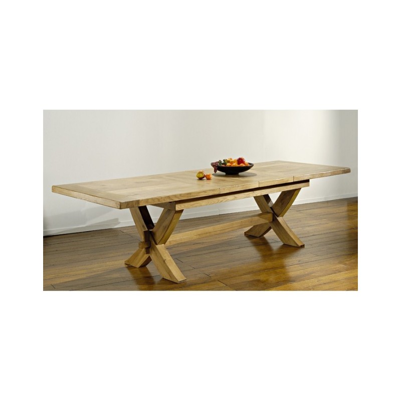 Table monastère pieds X rectangulaire chêne massif allonges intégrées