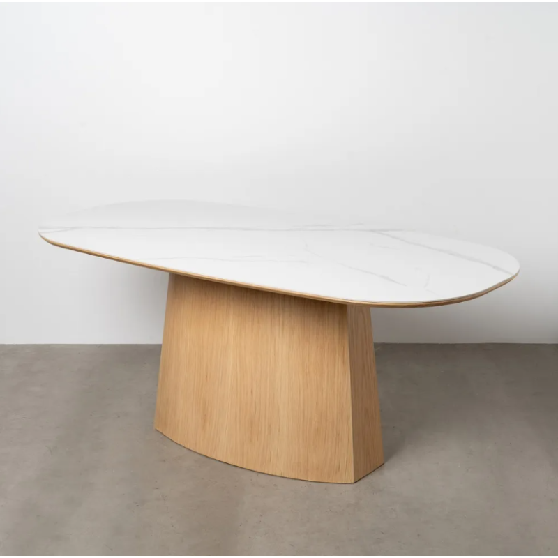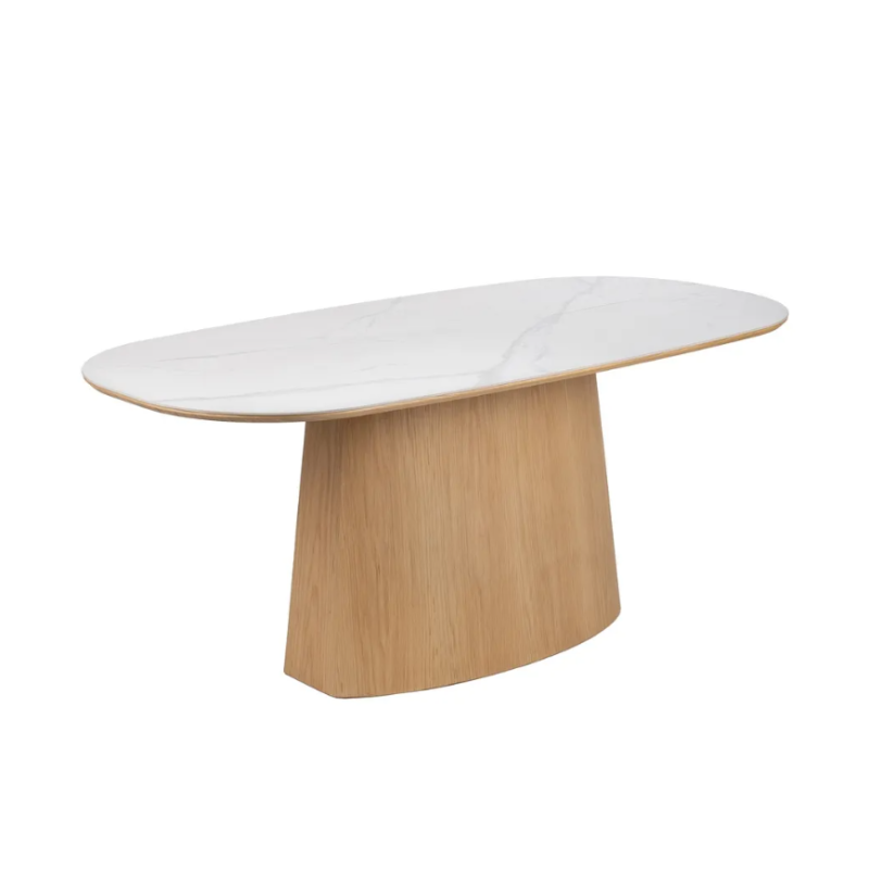 Table scandinave ovale plateau céramique marbré