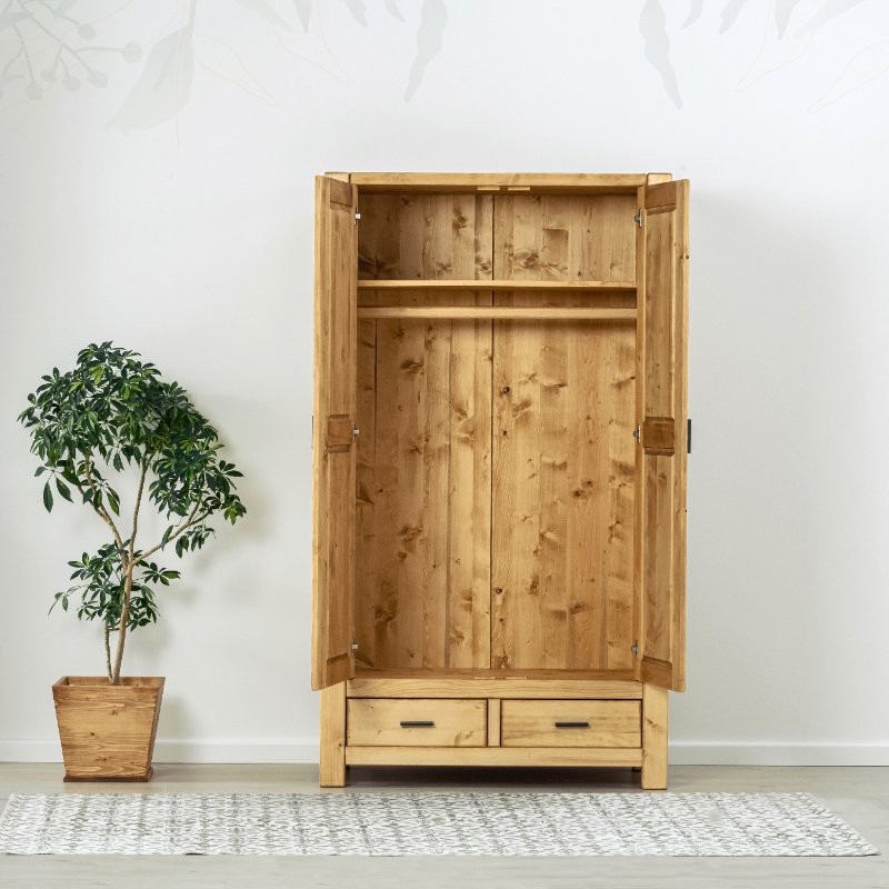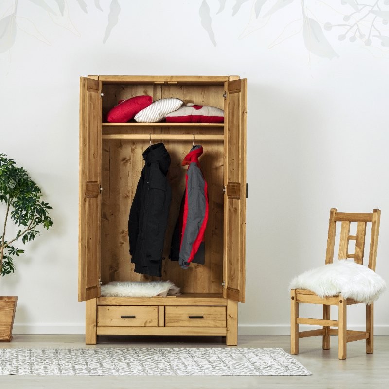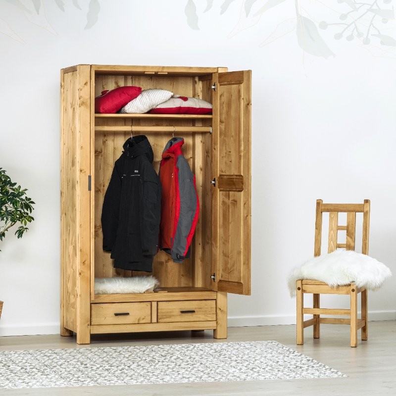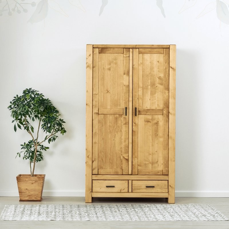 Voici notre armoire 2 portes 2 tiroirs en sapin ciré massif.