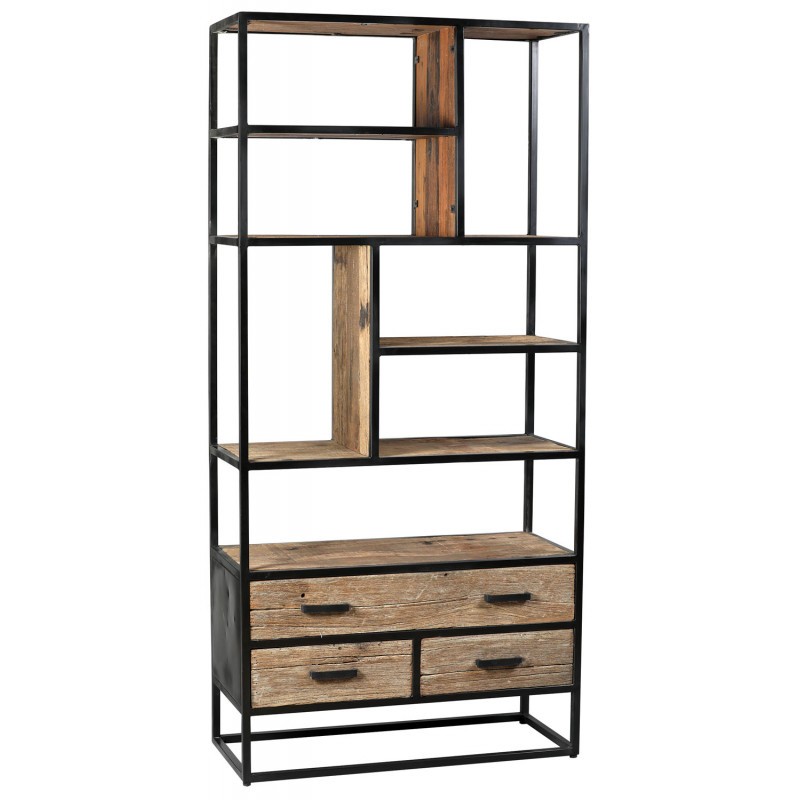 Voici notre bibliothèque en bois de teck et acier. Véritable meuble de rangement, équipé de 3 tiroirs.