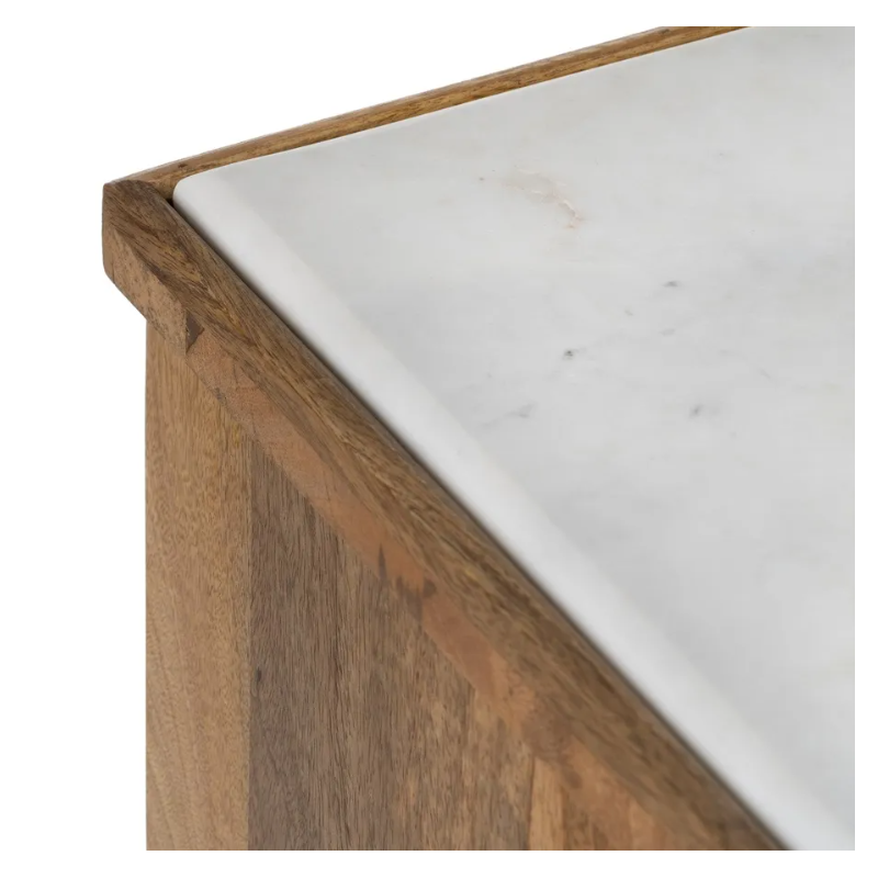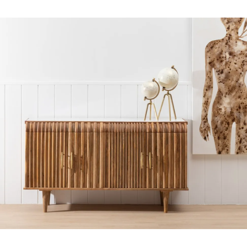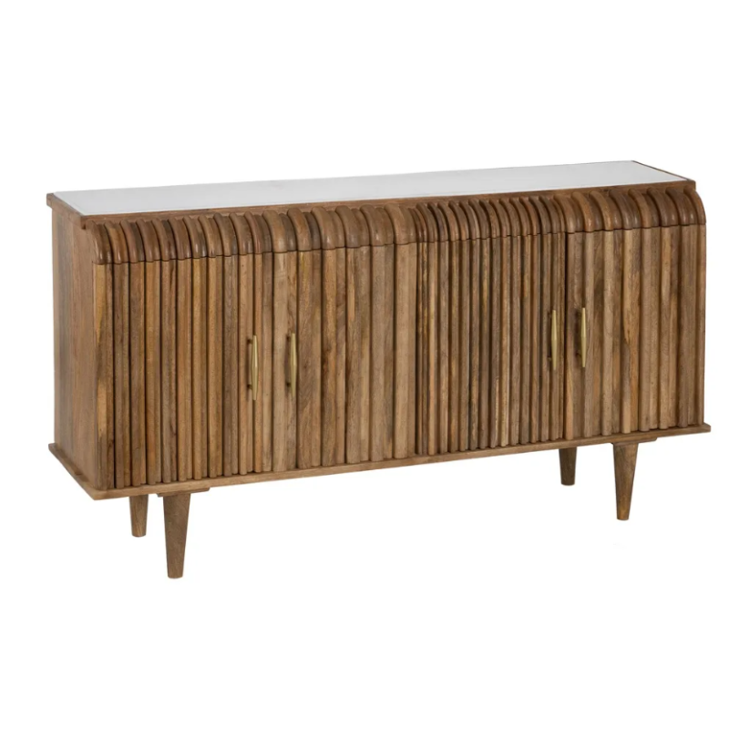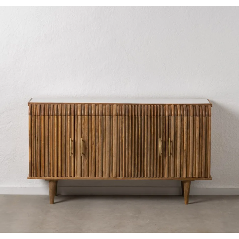 Voici notre buffet 4 portes avec un dessu marbre blanc et bois de manguier