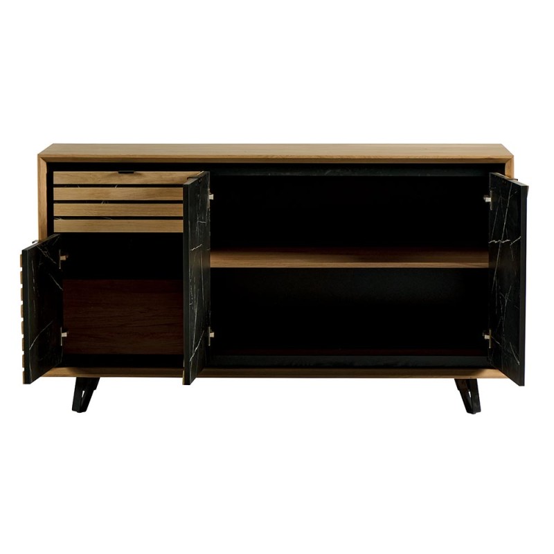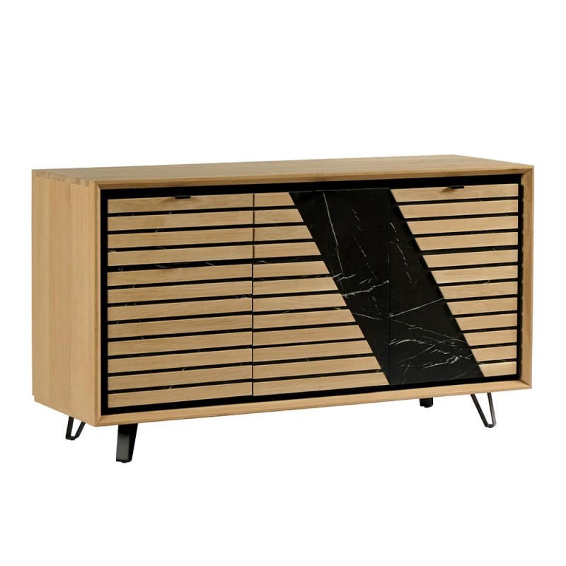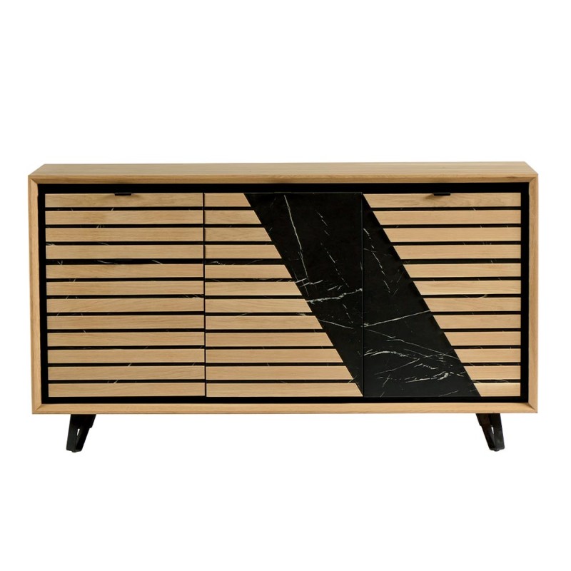 Voici notre buffet Story chêne blanchi 3 portes 1 tiroir décor marbre noir Il apportera à votre pièce une touche chaleureuse avec un design très tendance.