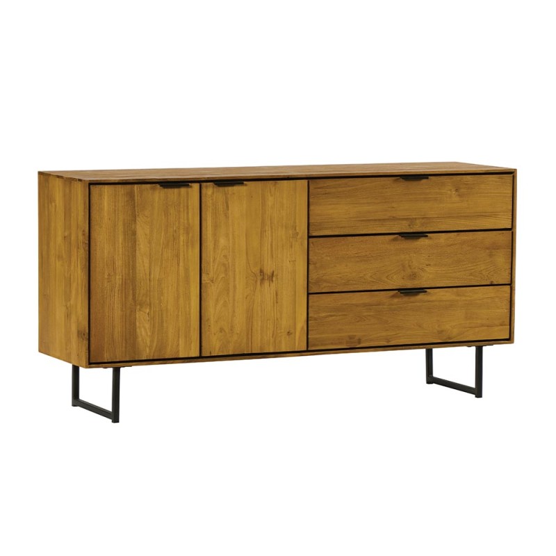 Buffet 2 portes 3 tiroirs teck massif recyclés.