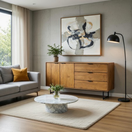 Buffet 2 portes 3 tiroirs teck massif recyclés.