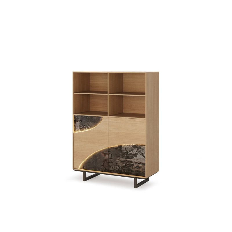 Armoire 2 portes 4 niches Zagas Capri chêne et décor céramique avec Led
