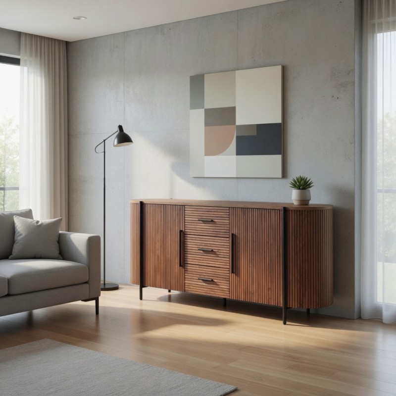 Buffet 2 portes 3 tiroirs teck