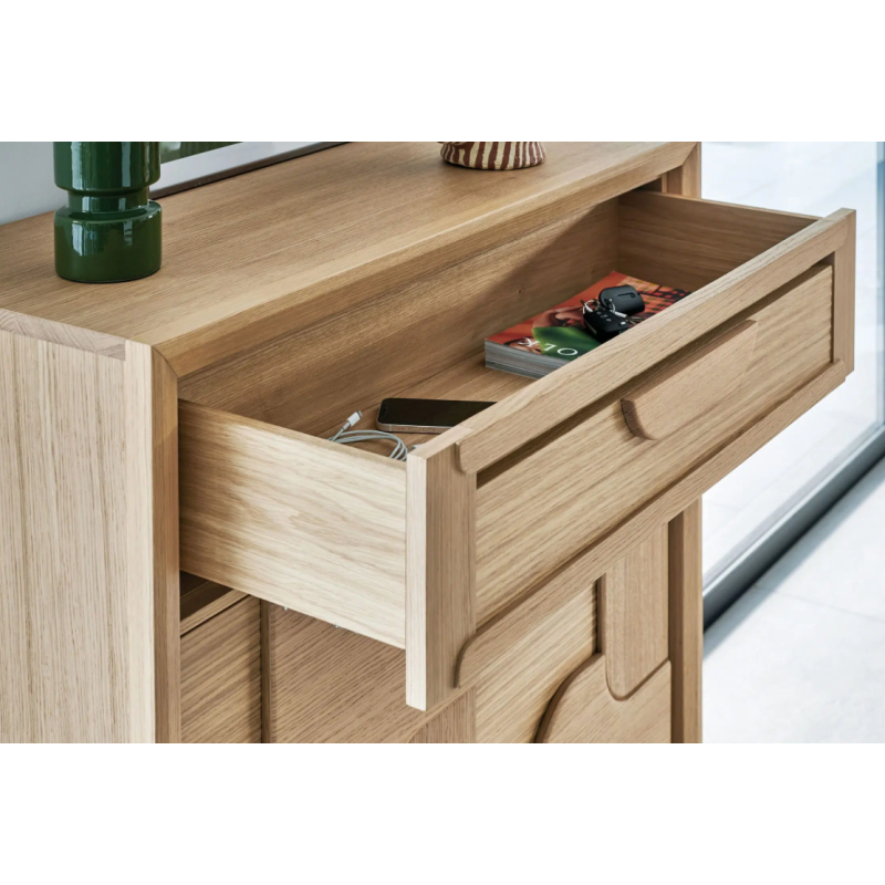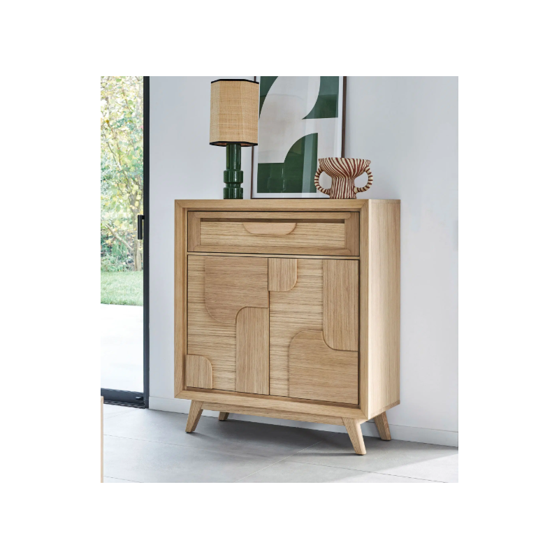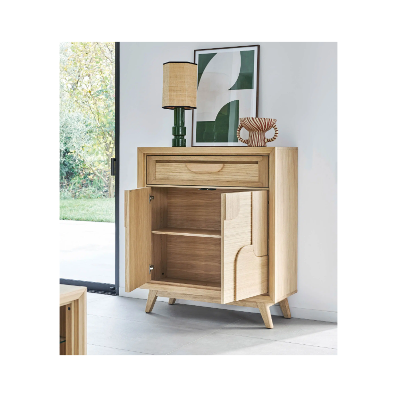 Voici notre buffet Rio en bois de chêne. Véritable meuble de rangement, équipé de 2 portes