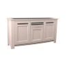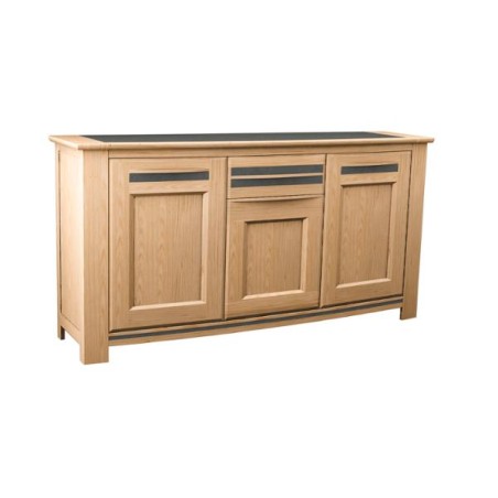 Buffet 3 portes façade en courbe chêne et incrustation céramique.