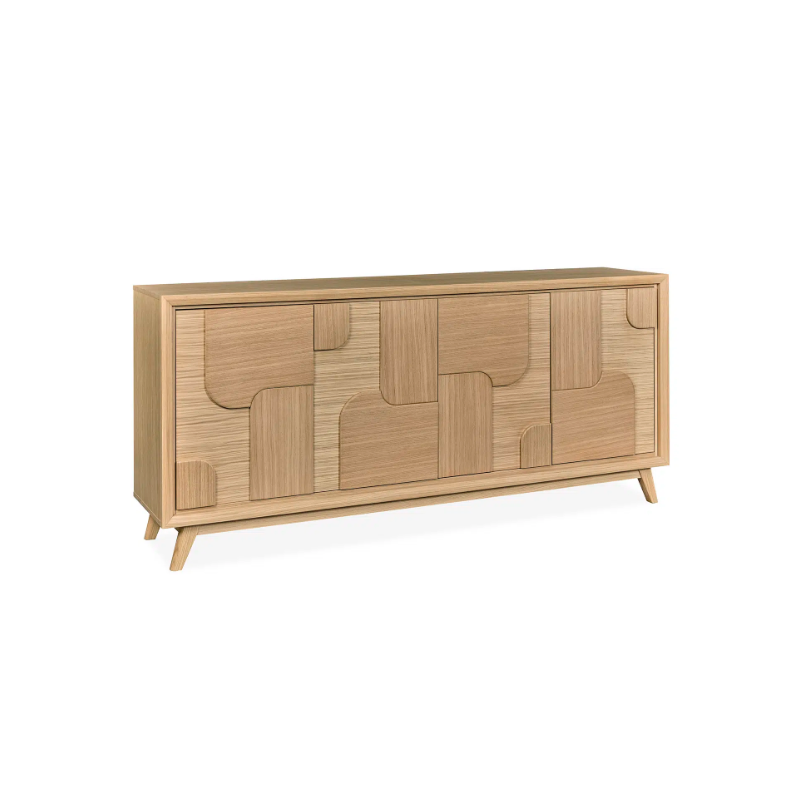 Voici notre buffet Rio en bois de chêne. Véritable meuble de rangement, équipé de 4 portes