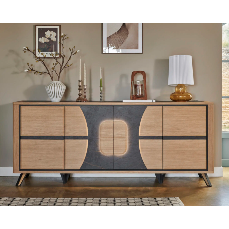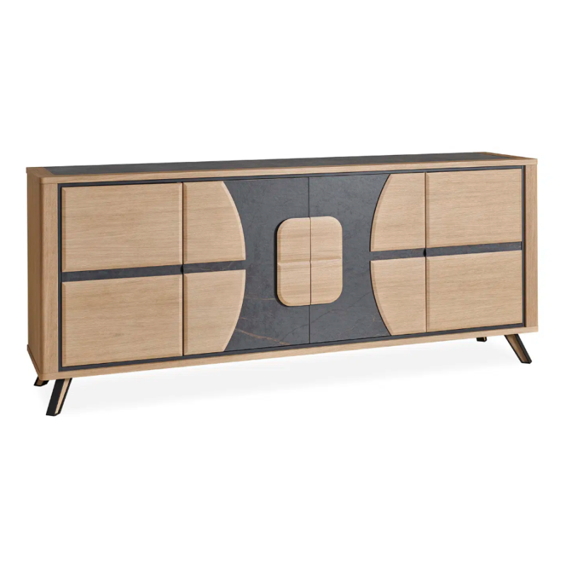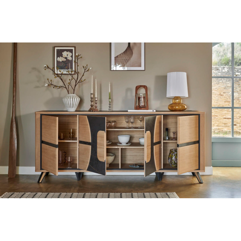 Voici notre buffet en bois de chêne et métal. Véritable meuble de rangement, équipé de 4 portes