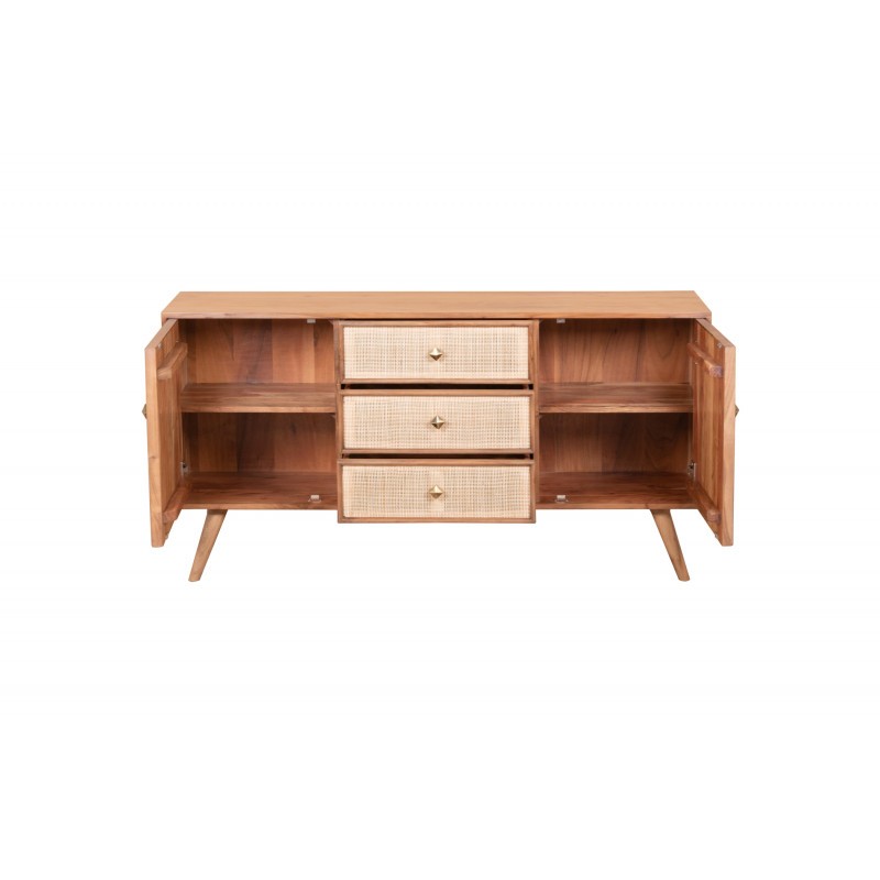 Voici notre buffet Paris en bois d'acacia. Véritable meuble de rangement, équipé de 3 portes et 3 tiroirs.