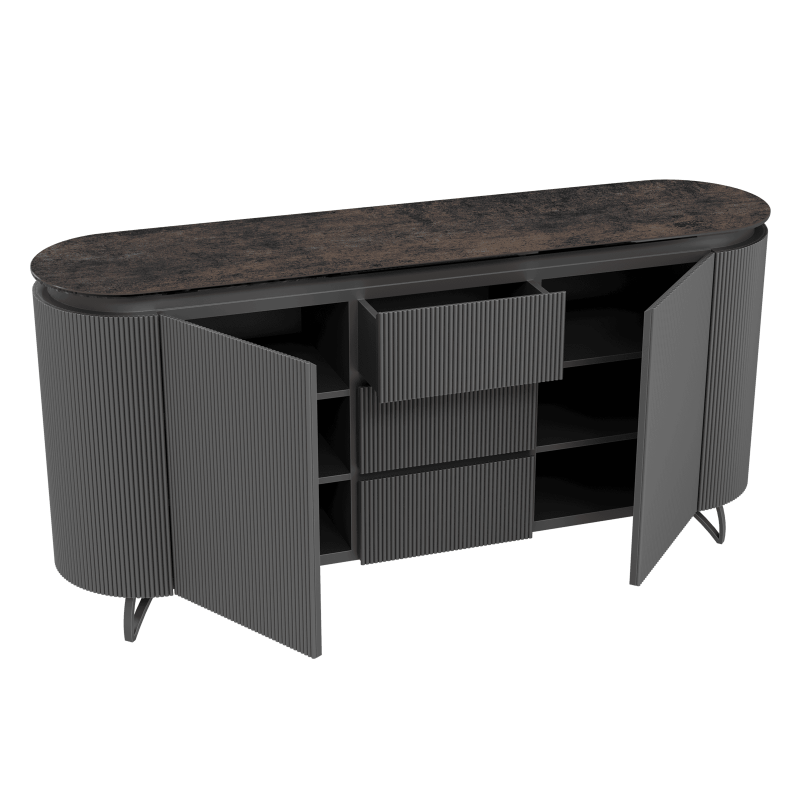 Le buffet Columbus d’Akante allie design contemporain et finitions haut de gamme. Il est doté d’un plateau en céramique disponible en 9 coloris de céramique, offrant un large choix de styles, du plus sobre au plus sophistiqué. Fonctionnel, il dispose de 2 portes et 3 tiroirs pour un rangement optimal. Le buffet Columbus est proposé en deux dimensions, 130 cm ou 170 cm de largeur, avec une profondeur de 43 cm et une hauteur de 81 cm, afin de s’adapter parfaitement à tous les espaces de vie.