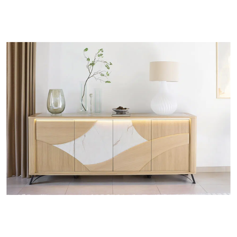 Buffet Riviera Girardeau 4 portes chêne et céramique