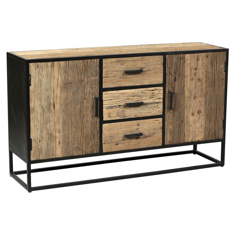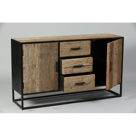 Voici notre buffet en bois de teck massif recyclés. Véritable meuble de rangement, équipé de 2 portes et 3 tiroirs.