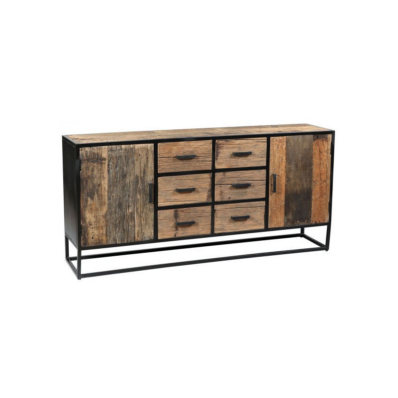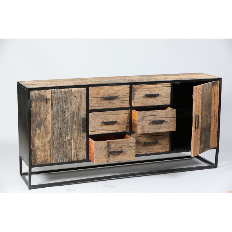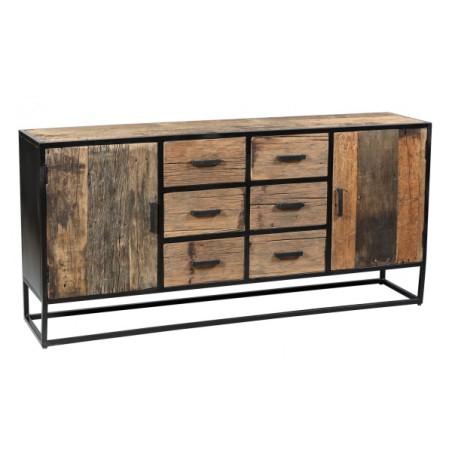 Voici notre buffet en bois de teck massif recyclés. Véritable meuble de rangement, équipé de 2 portes et 6 tiroirs.