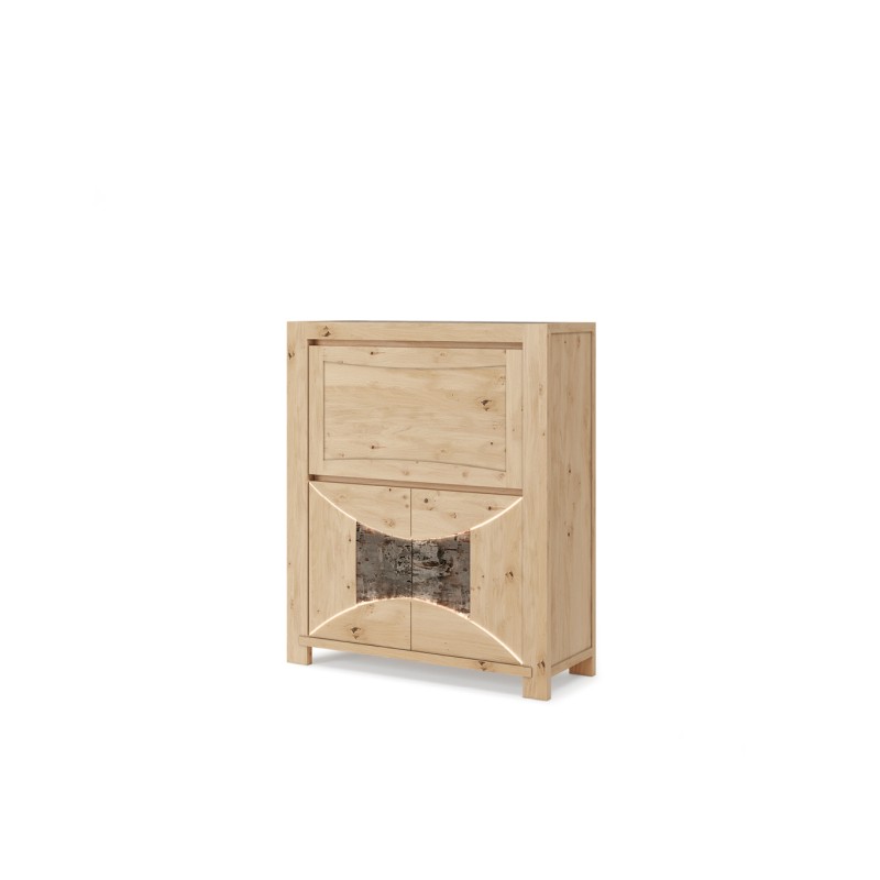 Petit buffet Zagas Provence 2 portes et 1 porte basculante chêne et céramique
