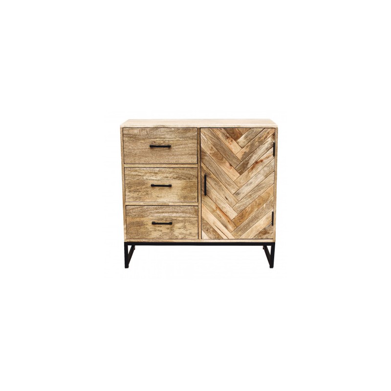 Buffet ten bois de manguier massif 1 porte 3 tiroirs