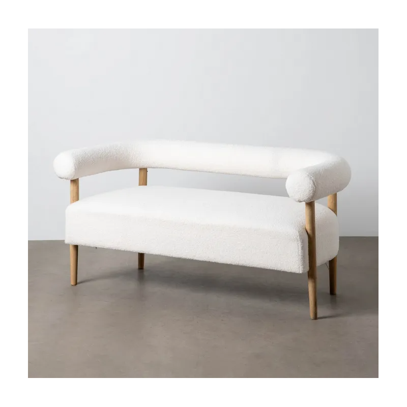 Canapé bouclette et bois 2 places