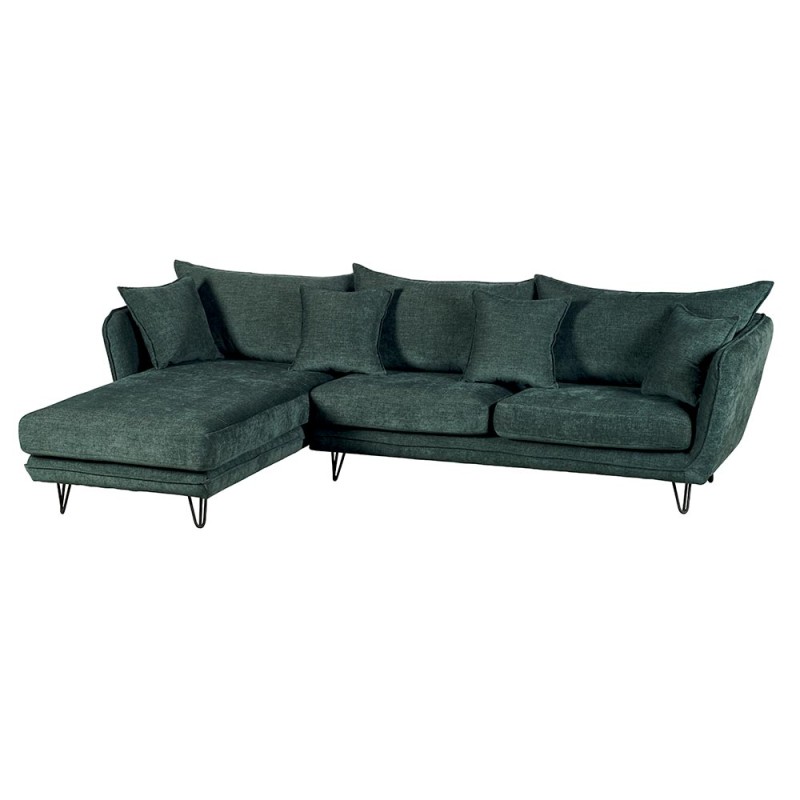 Canapé d'angle Teddy, disponible en 5 coloris de tissus: Gris, Bleu pétrole, Vert, Jaune, Gris anthracite.