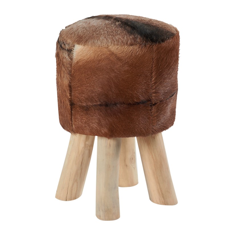 Voici notre tabouret rondin en véritable peau de chèvre,...