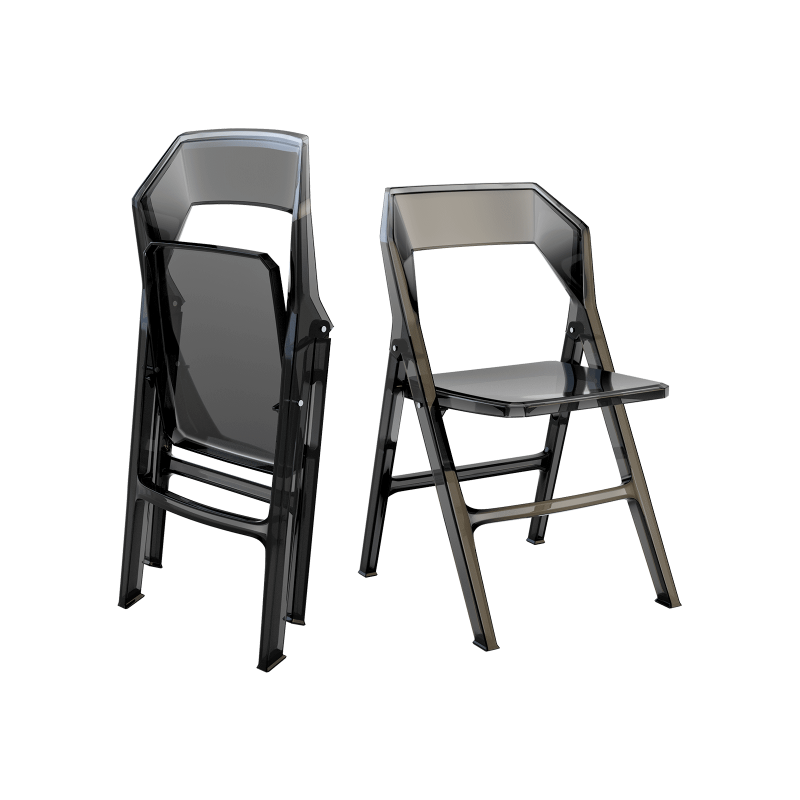 Chaise belle et pratique : la quintessence du design. Une chaise pliante en polycarbonate. Son design est unique. Elle est aussi très stable.