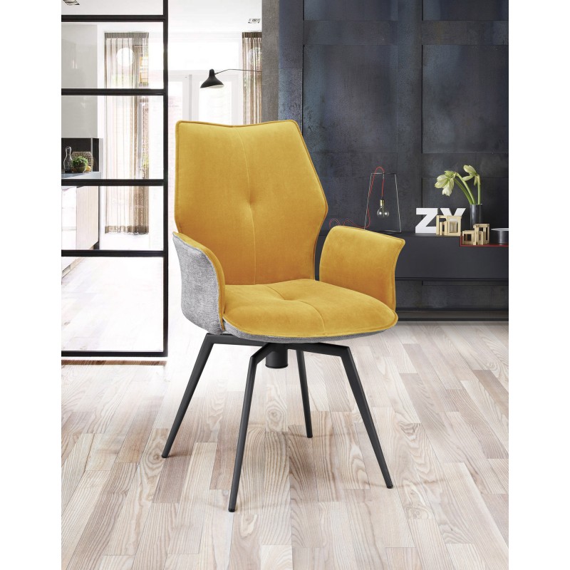 Chaise avec accoudoirs pivotante velours et dos en tissu moucheté disponible en 6 couleurs.