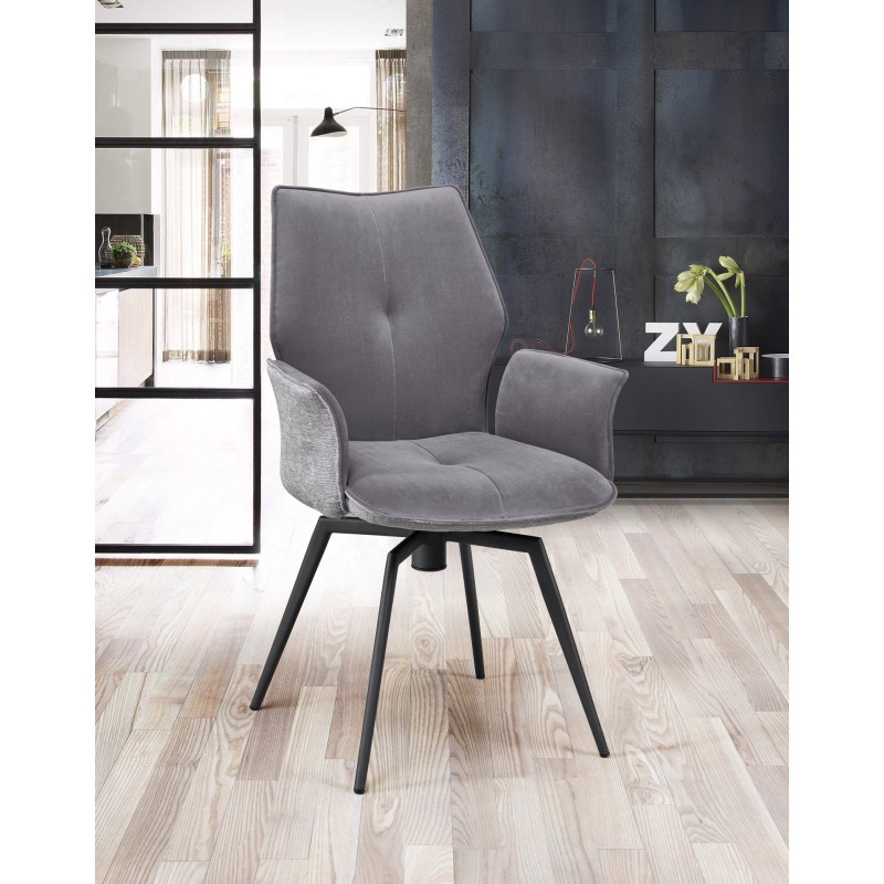 Chaise avec accoudoirs pivotante velours et dos en tissu moucheté disponible en 6 couleurs.