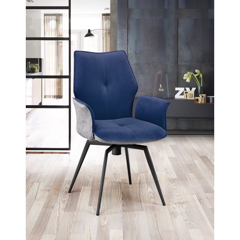 Chaise avec accoudoirs pivotante velours et dos en tissu moucheté disponible en 6 couleurs.