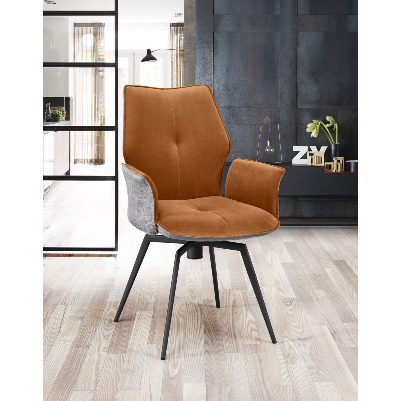Chaise avec accoudoirs pivotante velours et dos en tissu moucheté disponible en 6 couleurs.