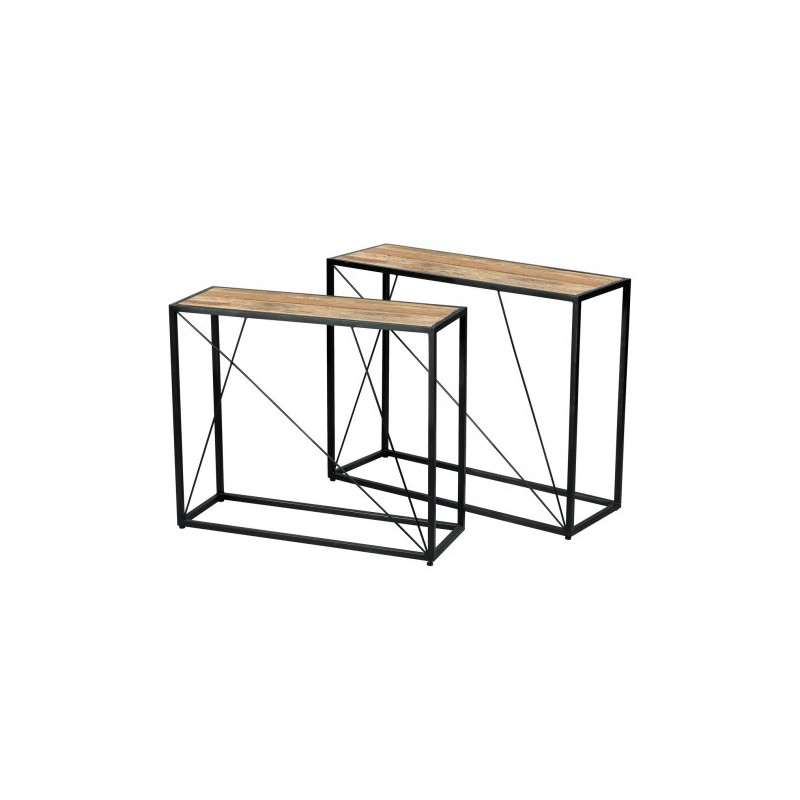 Structure en acier noir satiné, dessus en manguier massif, finition vernis nitro cellulosique