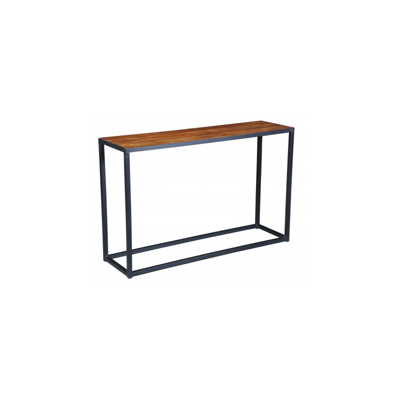Structure en acier, panneau MDF et lame de bois de récupération palissandre, peinture vieillie et vernis nitro